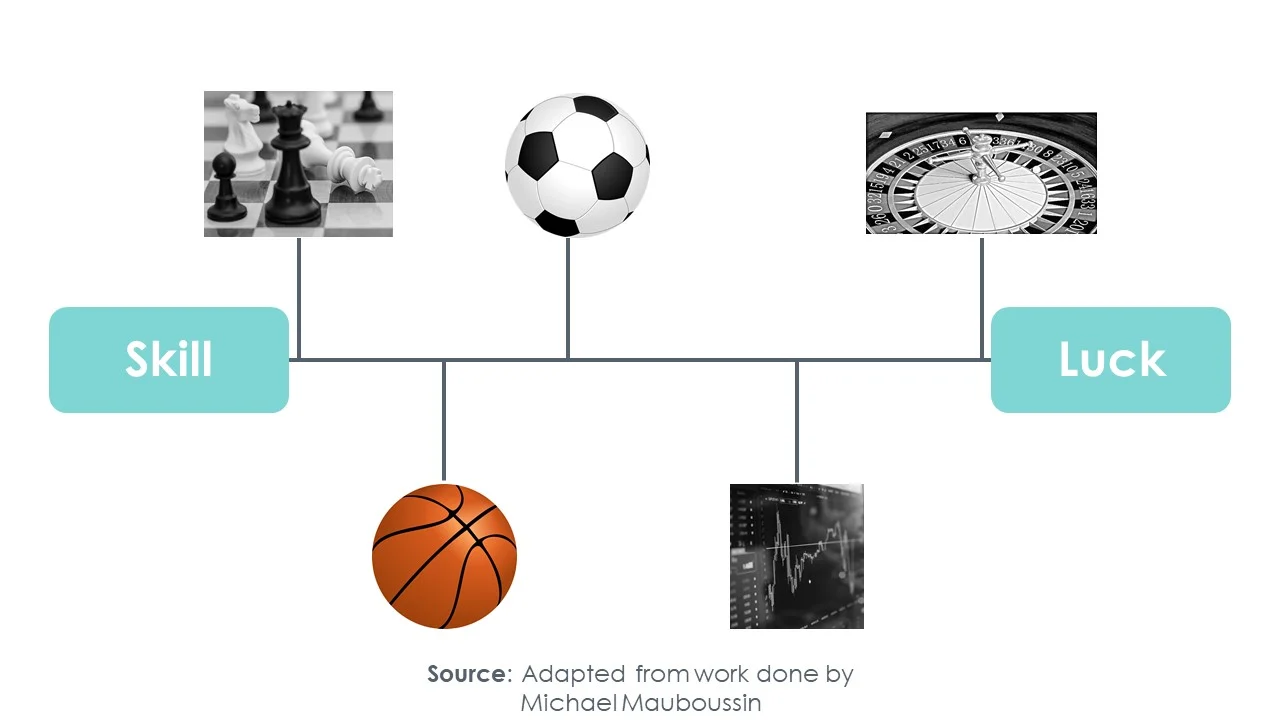 The outcome of some activities are entirely dominated by skill while others are entirely based on luck. Take chess or playing the cello for example – luck has no direct influence on the outcome of these activities, they are purely based on skill.
